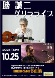 ゲリラライブ:op19:30 / st 20:00 / 2,000円+order