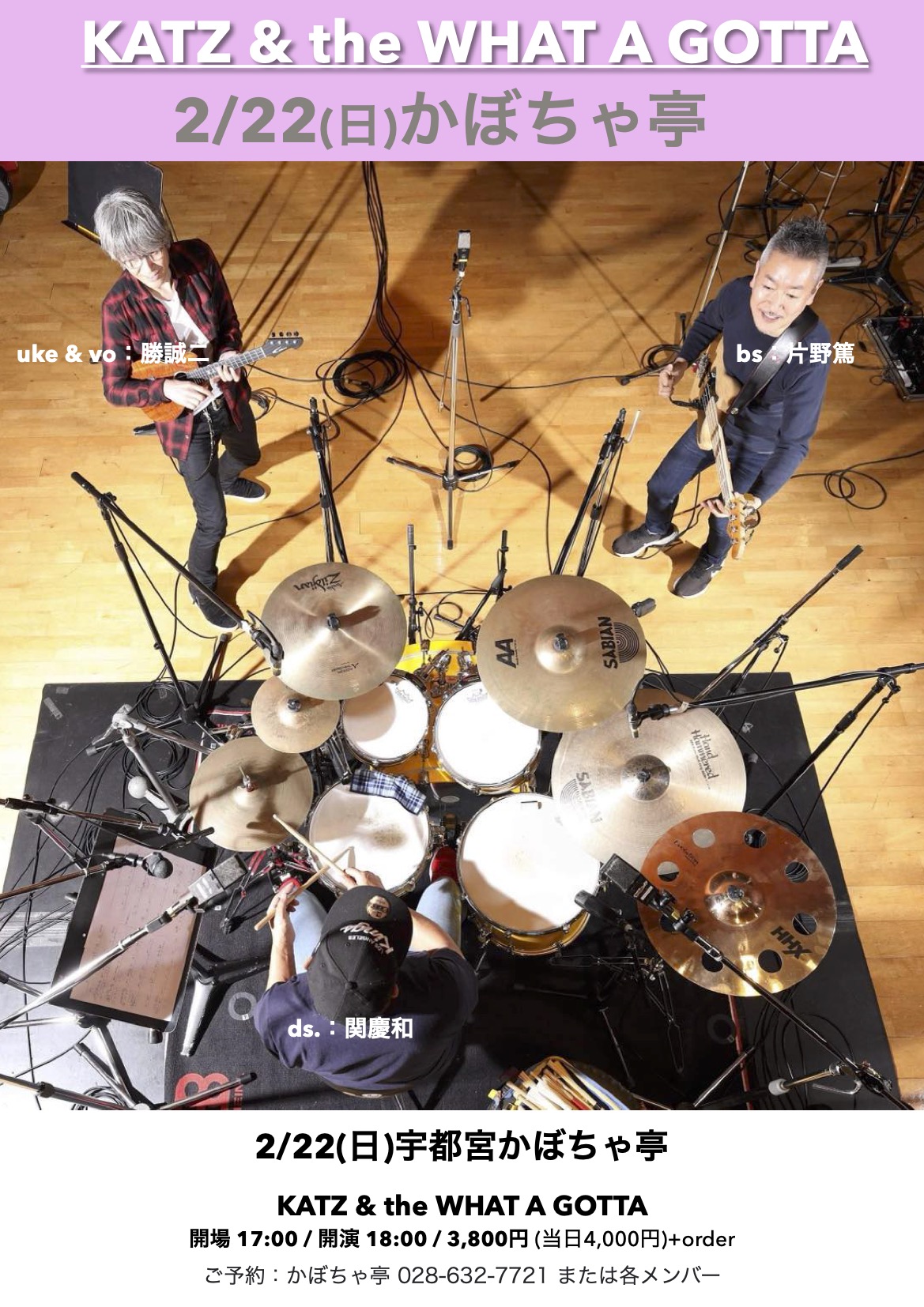 2/22(日)KATZ & the WHAT A GOTTA@宇都宮かぼちゃ亭