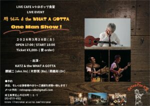 前回は2023年。コロナがあり、レトロポップ食堂は引っ越しをした。かつてレトロ&ビンテージなギター屋さん、そこが今のレトロポップ食堂だ。前あった場所からすぐの場所。その新生レトロポップ食堂でワッタガッタが久々にライブを行います。